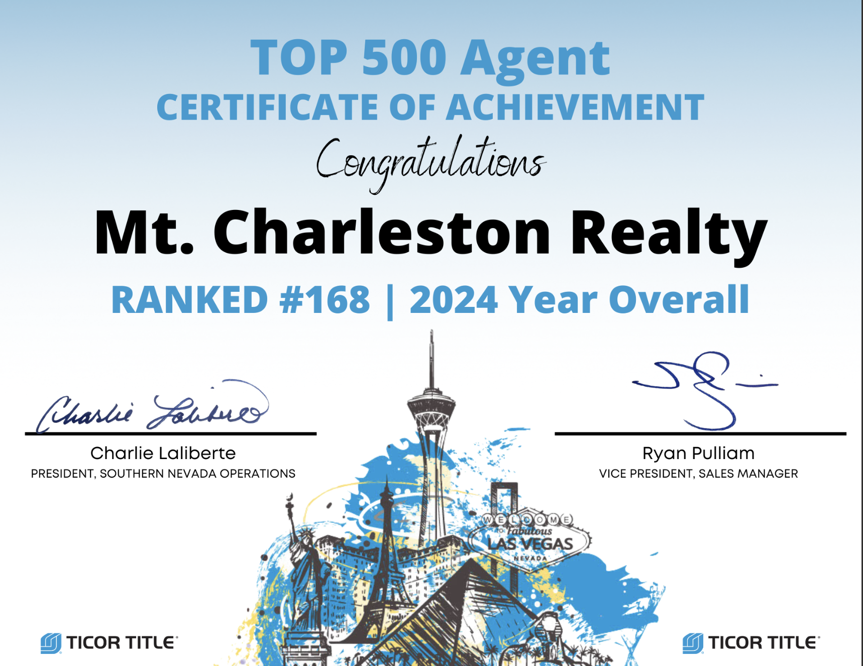 We are grateful to have consistently ranked in the Top 1% of approximately 18,000 Southern Nevada real estate agents for total sales production and ranked as the Best of Zillow Premier Agents.